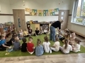 Grupę „Pszczółki” odwiedziła mama Jaśminki, Pani Lidia. Pani Lidia poprowadziła z dziećmi zajęcia rytmiczne. Podczas zajęć z Panią Lidią dzieci uczyły się świadomie słuchać muzyki oraz wyrażać ją poprzez rytmiczne akompaniowanie i grę na różnych instrumentach. Ponadto reagowały na zmianę dynamiki i tempa muzyki. Rozróżniały wysokość i barwę dźwięku, dzięki czemu rozwija się u nich muzyczna wrażliwość. Przedszkolaki były bardzo aktywne podczas zajęć oraz chętnie brały w nich udział.
